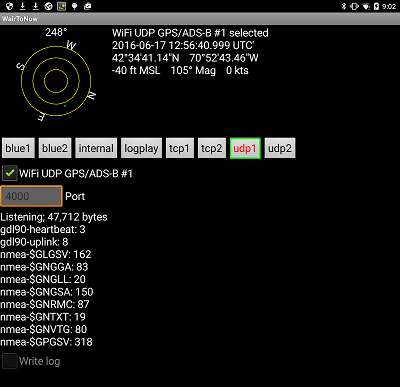 - WiFi TCP GPS/ADS-B - enables receiving GPS and/or ADS-B information from an