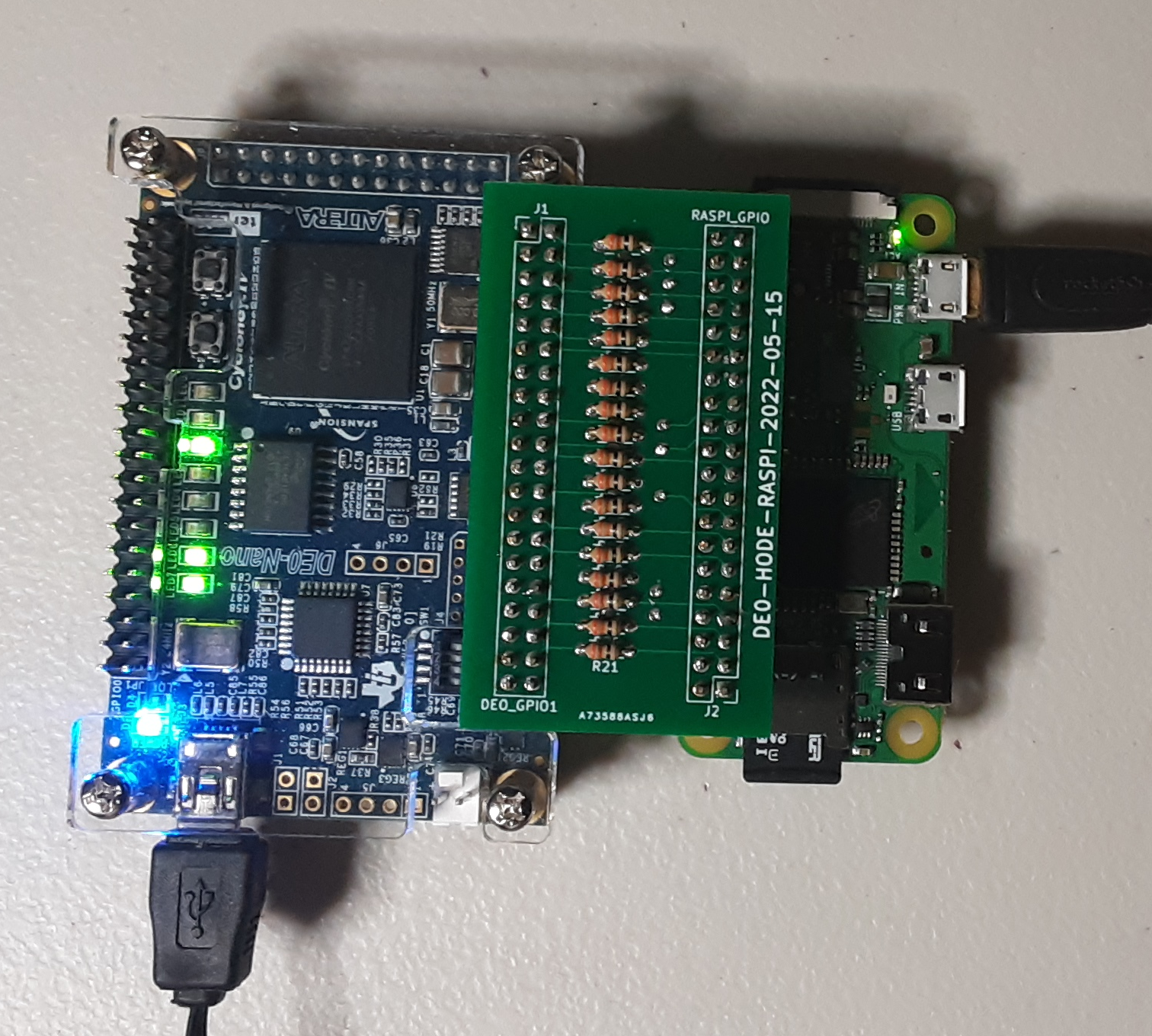 Interesting note: The interconnection board isn't Hode specific as such, it can be used for other projects requiring up to 26 directly connected GPIO lines between a Raspi and a DE0 Nano. |