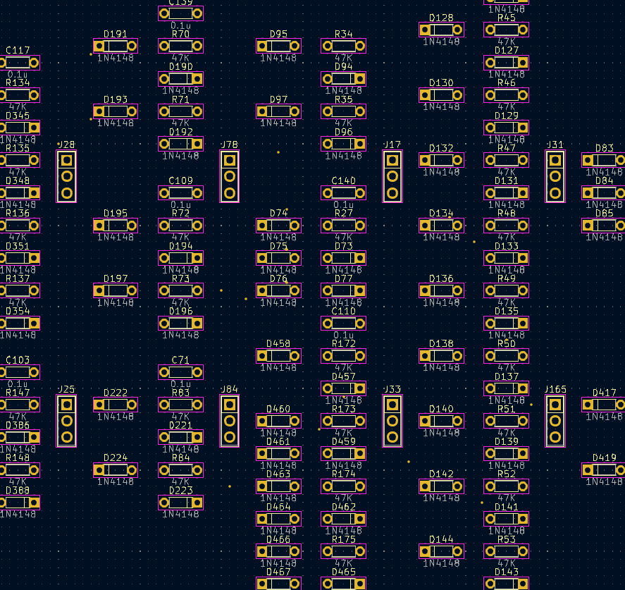 There are no schematics as such for the big crystal rectifier boards. Their design comes from Verilog-like source files. Those source files are passed to a compiler which then generates PC boards with the gates in place. The connections within each gate are already routed but the connections between the gates are not routed, and so it takes about a whole day to route one of the boards.
